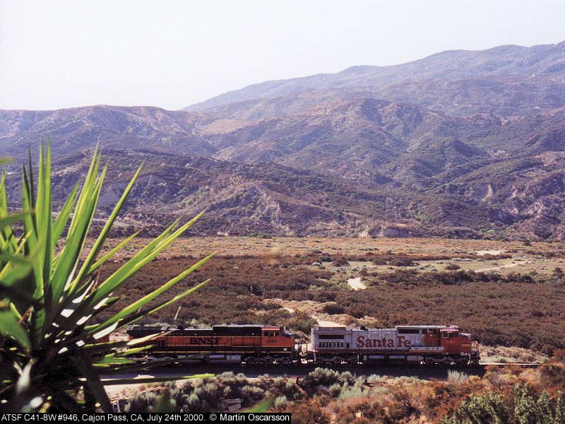 Santa Fe C41-8W #946 leads an eastbound train on Cajon Pass, CA, July 24th 2000.