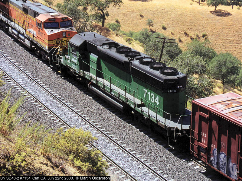 BN SD40-2 #7134 at Cliff, CA, July 22nd 2000.