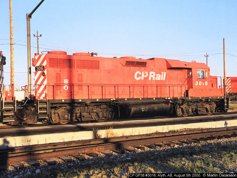 CP GP38 #3016 at Alyth, AB, August 5th 2000.