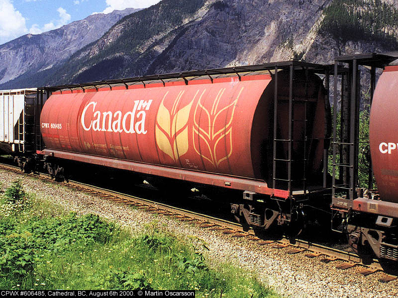 606485 CPWX hopper #606485 at Cathedral, BC, August 6th 2000. |