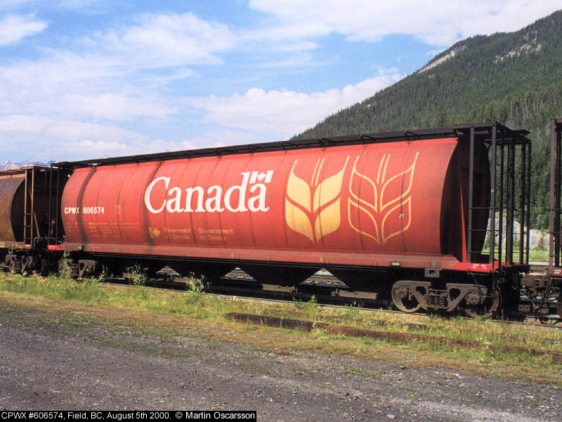 606574 CPWX hopper #606574 at Field, BC, August 5th 2000. |