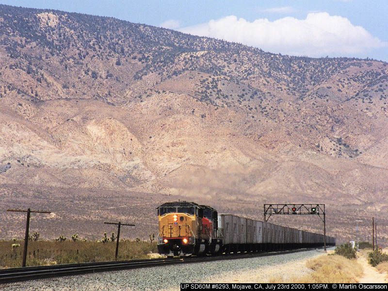 UP SD60M #6106 at Summit, Cajon Pass, CA, July 24th 2000. This is an early
