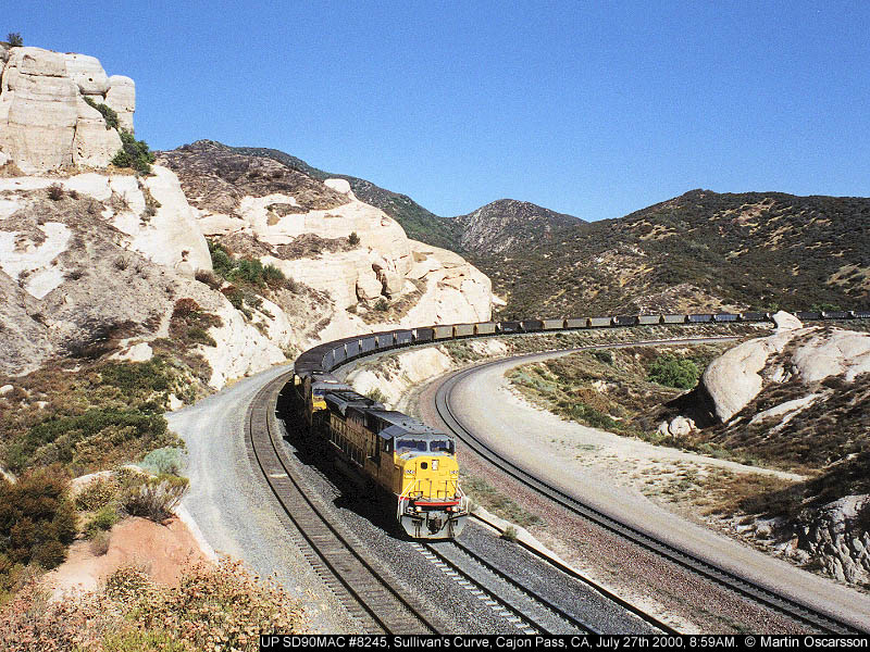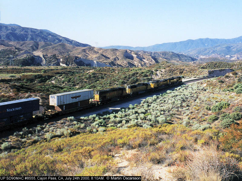 UP Phase-II SD90MAC #8522 as seen from Hill 582 on Cajon Pass, CA, July