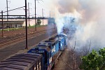 -Click here to see Norfolk Southern GP-38 PRR # 2916, and Norfolk Southern SW-1001 PRR # 2103. The 2 former Conrail engines are blowing smoke as they pull out of Frankford Junction Yard with train WPFJ-4. Phila. Pa. 4/5/03.| Search Stan's RailPix ! |