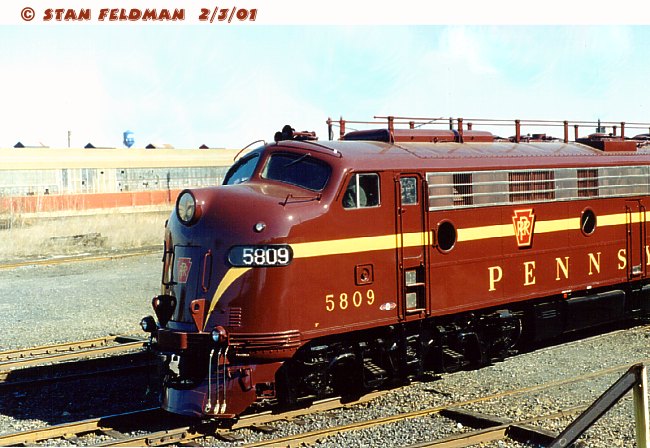 Click here to see Pennsylvania Railroad (PRR) E-8A #5809A, shimmering in the bright afternoon sun. Outside of The Juniata Terminal Company, Philadelphia, Pennsylvania. 2/3/01.