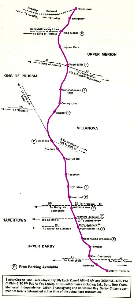 -Click here to see a 1976 map of The Septa Newtown Line (156 kb). Trains run now only to Fox Chase.