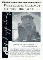 -Click here to see a 1935 ad called, "Pennsylvania RailRoads Electric Highway." This ad describes the role of Westinghouse in building The Electric Highway from Manhattan to the Nation's Capital. June 29,1935.