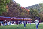 3 additional Digital Images showing PRR # 5809 & PRR # 5711 coming down the Horseshoe Curve with an " Allegheny Mountain Limited " Horseshoe Curve and Gallitzin Tunnels excursion train. The train has run around the "loop" track at Gallitzin that is normally used by helper engines, and will head back to the Altoona Passenger Station. All eyes are on the pair of restored Pennsylvania Railroad Locomotives as they proudly lead the train around The Horseshoe Curve National Historic Landmark. Altoona Pa. 10/6/01.