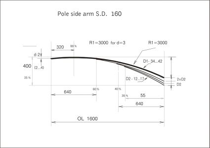 Length=1500...2000mm. Applicable on concrete, or metallic poles of any sizes or shapes. Suitable luminaires : - 'Bell-Saucer' of medium or large size. - Side-arm lanterns for 42 to 48mm arm end diameter. |