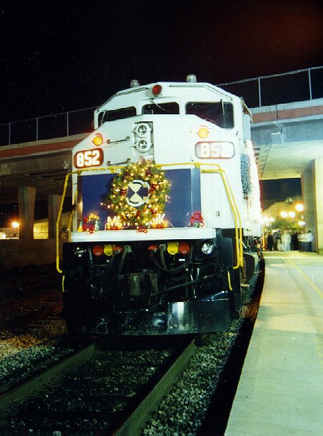 (77K) It wouldn't be Christmas without Santa! He gave his sleigh and Rudolph a break so Santa could ride the train.