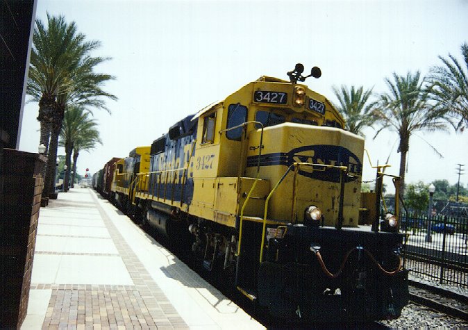 A Santa Fe work train stopped right in front of the depot just so I could photograph it! I appreciated it very much