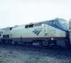 | (37K) June 14, 2001, Amtk P42 123 on the point of train #5 in new phase V paint. Originally this locomotive was painted in Phase IV scheme. |