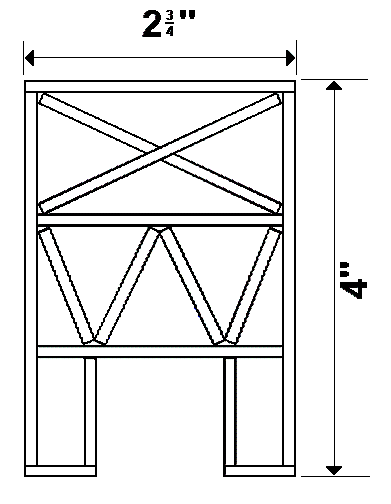 The center gap (where the railway is to be located) should remain unchanged, but the bottom horizontal pieces of the U-shaped hanging sections should each have 1/4 inch added to their lengths. Full-width horizontal beams need an additional ½ inch; also, the diagonal pieces will need to be lengthened to fit. (See the amended Figure 3 below).