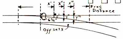 rail, past the frog until the 1/4" mark rests on the gauge-side