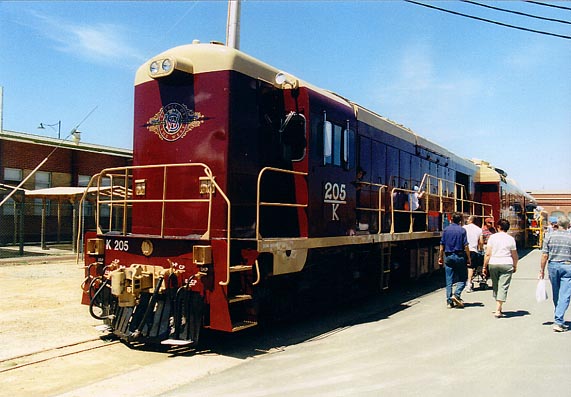 the 'Centenary of Federation Train'. The carriage behind it are all predecessor