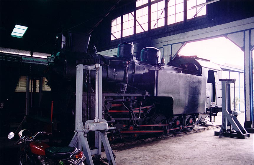 This F10 2-12-2T locomotive was used for the heavily graded railway around Malang, in East Java, hence its numerous wheel configuration. Numerous amount of moving wheels were needed to provide the adhesion for the steep line between Bangil and Lawang, which remains as the second steepest (non-rack) railway line in Indonesia today. |