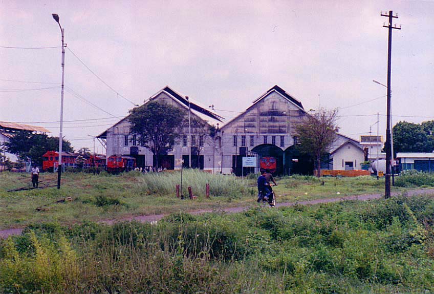 Distant view of loco shed. A group of BB301s and a bunch of diesel railcars are visible. The people on the bike are not employee of Rail company, but they are the inhabitant of houses which were built (illegaly) in Workshop area. |