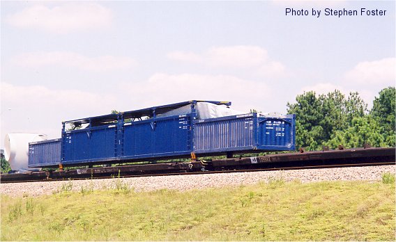 A closer look at the lading on UP train S-HOGY (Houston - Glencoe Jct, WY), photographed near the Hardy Toll Road at Spring, Texas on September 7, 2003. The train was carrying components for wind turbines (to be used for generation of electricity) to a "wind farm" in Wyoming.