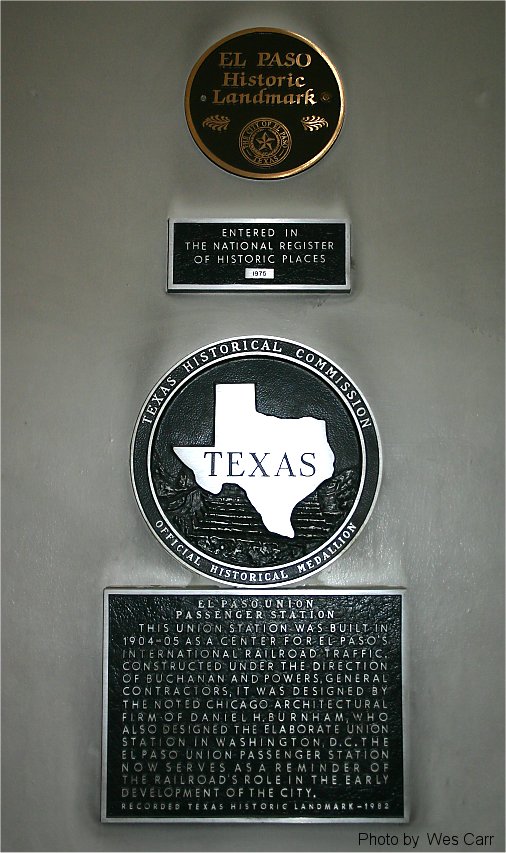 This marker is located inside the El Paso Union Depot. Photographed in March 2005.