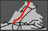 The line is single track with controlled sidings and one double-track section of the line: the three-mile segment between Pkin and Vesuvius. Southbound trains will usually take the right-hand main on this portion.
