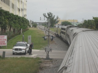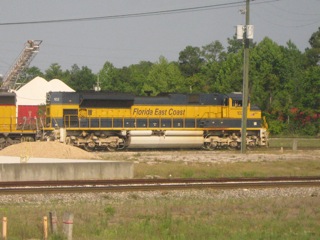Southbound FEC hotshot intermodal train # 101 pauses for us on a siding at Magnolia. |