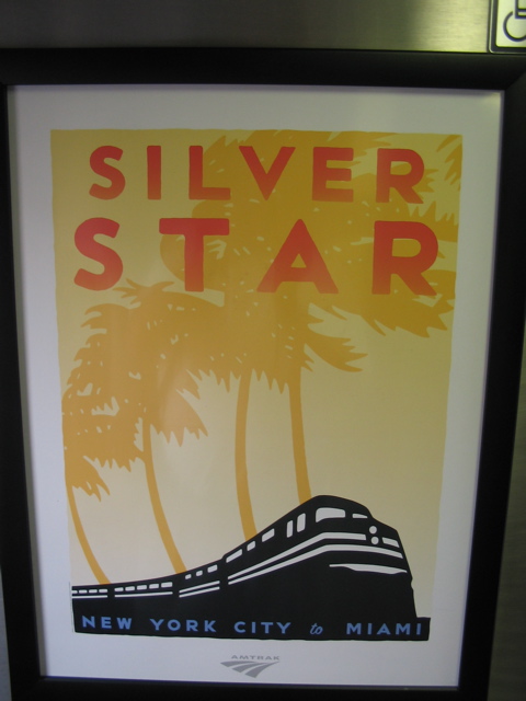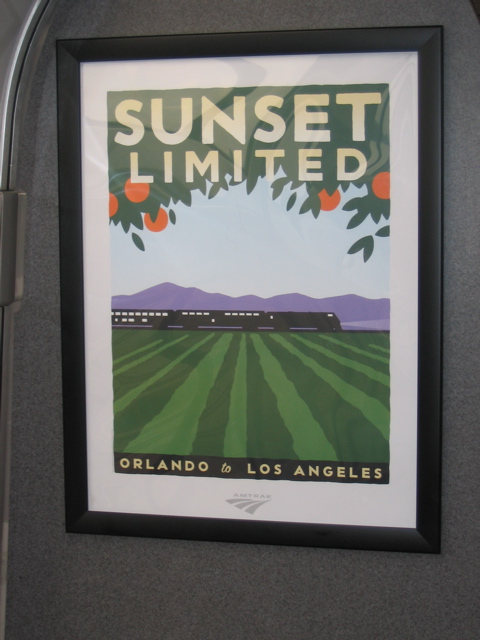 ![]() Framed Amtrak poster on the car bulkhead. |