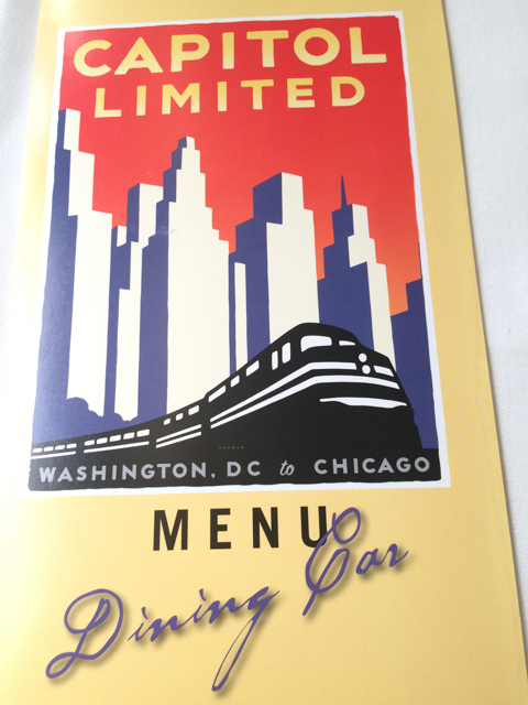 The menu on the Capitol Limited