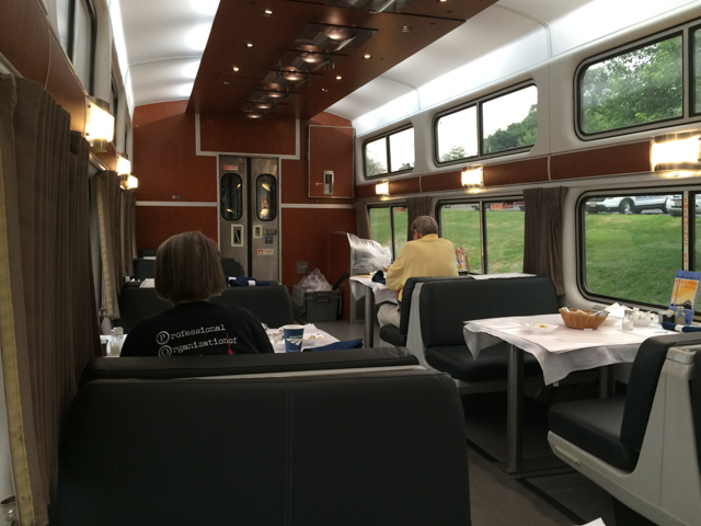 Breakfast in the dining car came as the Silver Meteor stopped in Jesup,