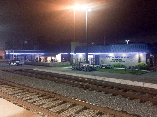 Richmond, VA Staples Mill Station during the Silver Meteor’s nighttime stop