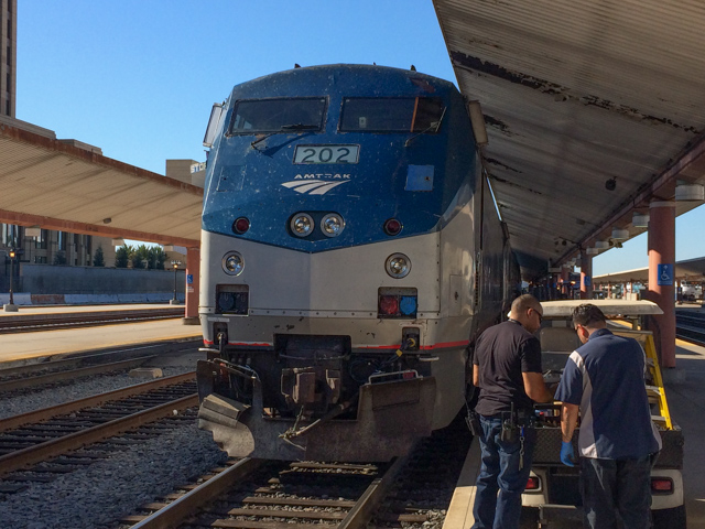 The northbound Coast Starlight prepares for departure from Los Angeles