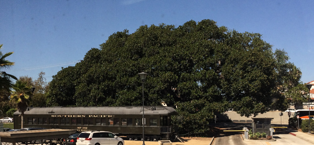 The famous Moreton Bay fig tree and a former SP office car stand