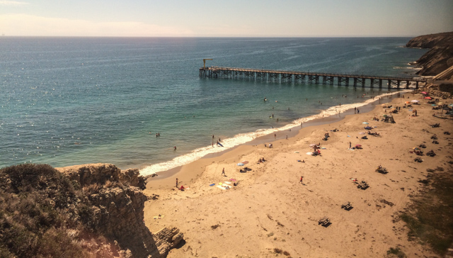 the distance and surfers riding the waves just offshore. Soon we