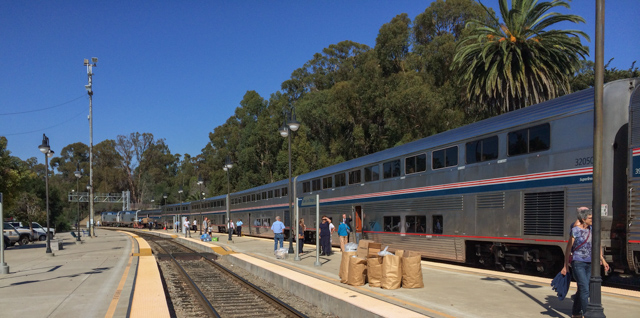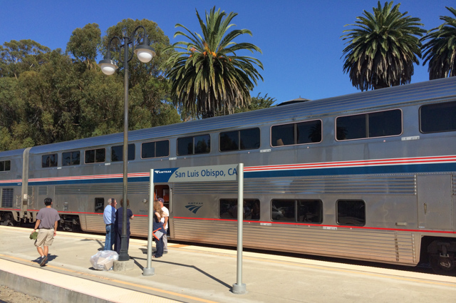 The stop at San Luis Obispo offers time to stroll the platform