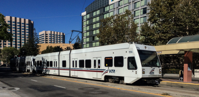 The San Jose light rail line passes close to the San Jose Marriott