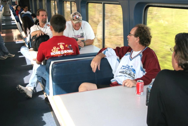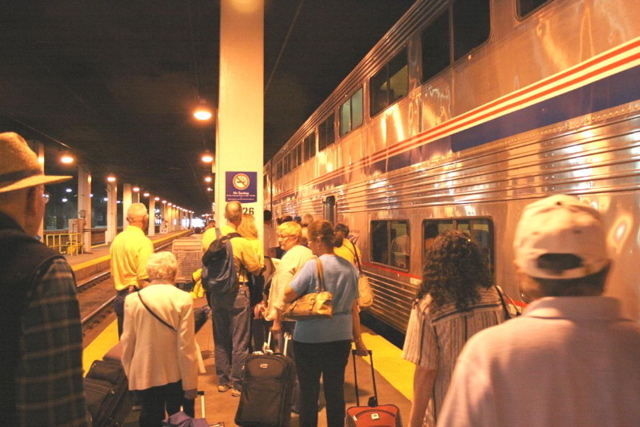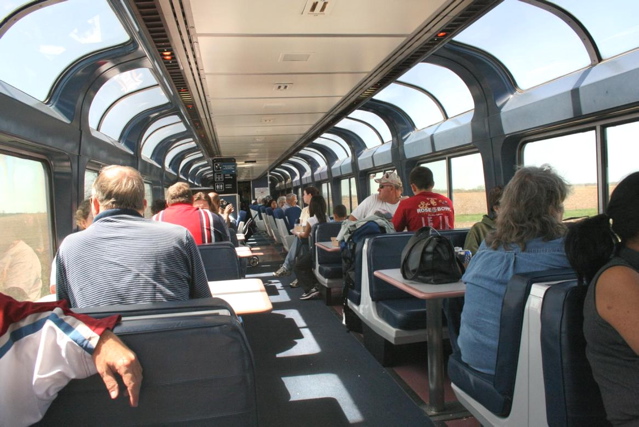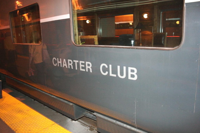 With our luggage deposited in the overhead of a coach car, our