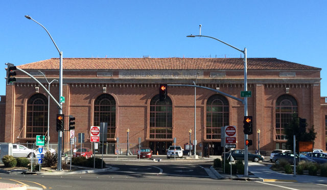 The Sacramento railway station, seen from behind the Vagabond Inn,