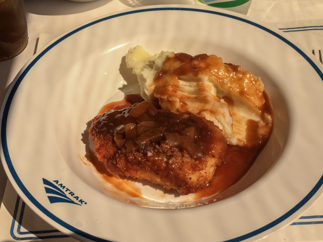 Dinner in the dining car came at 5:30 and the steak was delicious but