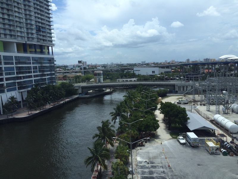 right side of the train as Biscayne Bay and the Port of Miami were just