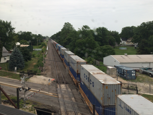Passing above a westbound stack train on the ex-ATSF line at Galesburg