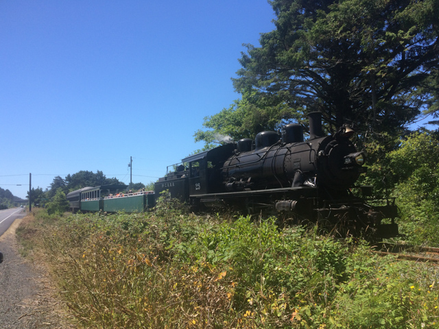 A steam train operating between Garibaldi and Rockaway Beach, OR