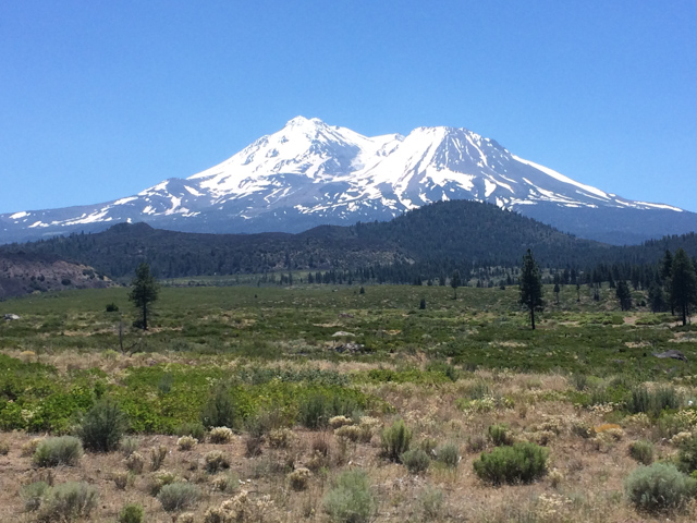 Mt. Shasta dominates the view for about 45 minutes along US 97 as well as from the northbound Coast Starlight
