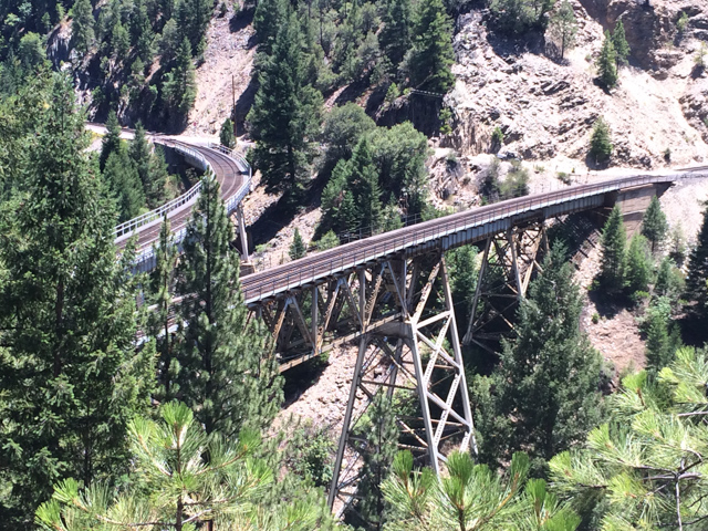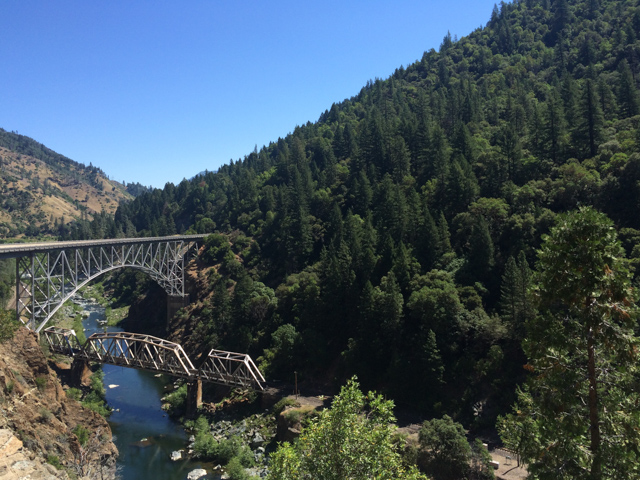 The highway bridge (above) and rail bridge (below) are notable sights in the Feather River Canyon