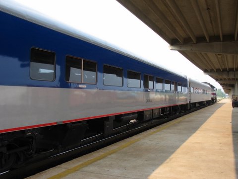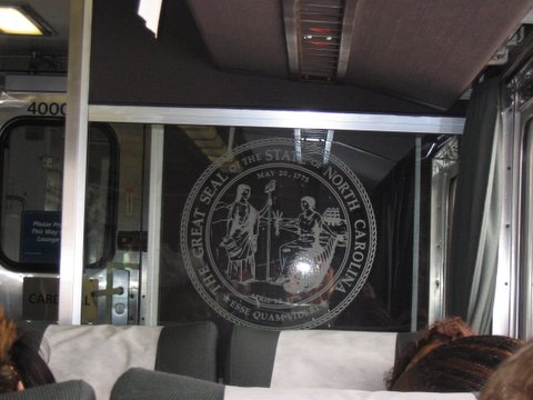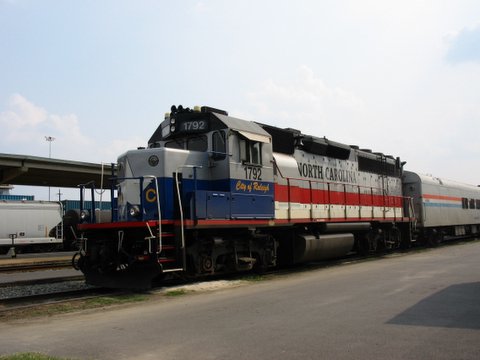 We expected this to be a light travel day but approximately 50 passengers are primed to board on this Saturday morning. A few others started their trips at the Piedmont's origin in Raleigh. A loud speaker on the station grounds advises that the northbound Silver Star is expected at 8:15am; it will miss its connection as our Piedmont will be long gone at 7:30. Our departure is held up a couple of moments by the large crowd and the loading of one passenger's bicycle into the rear coach.