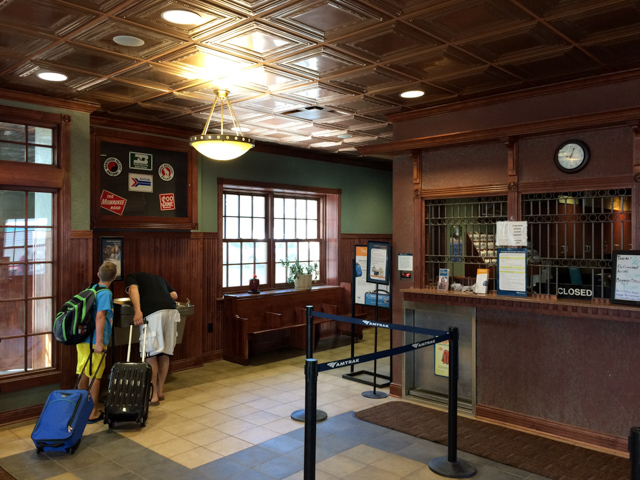 beautiful waiting room, ticket area, and front portico’s grandeur