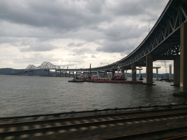Passing beneath the I-87/I-287 bridge over the Hudson River north of