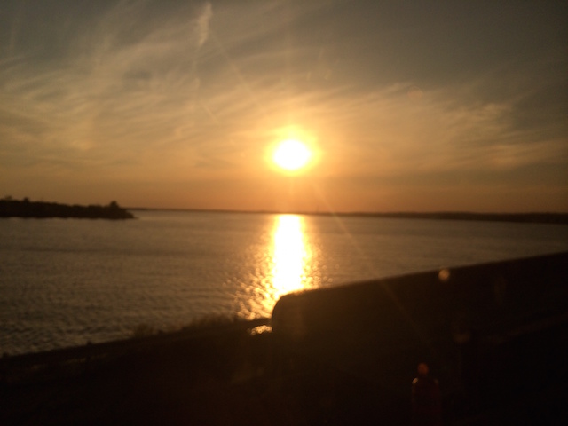 Mississippi River sunset as the Southwest Chief crosses from Illinois to Iowa