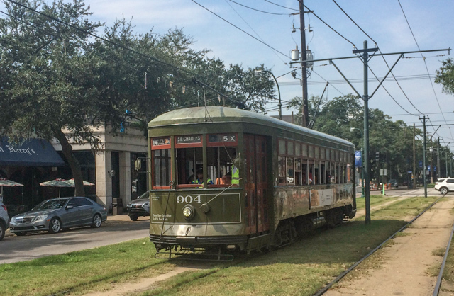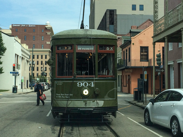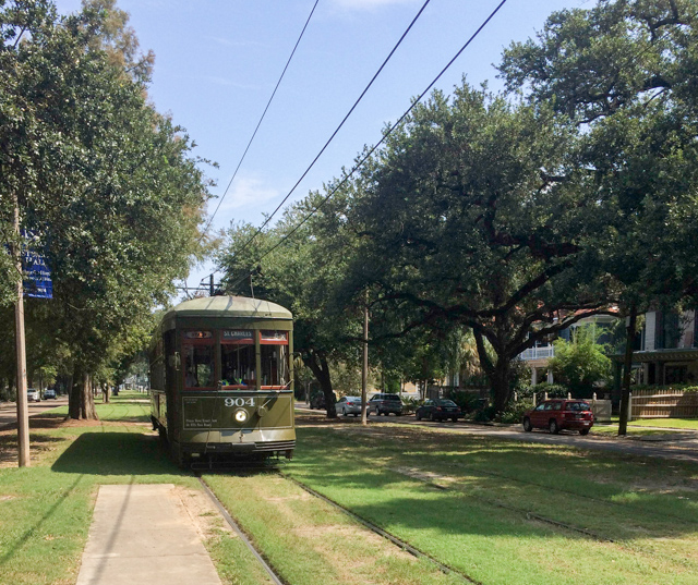 The author follows his son’s streetcar into downtown on Carondelet Street