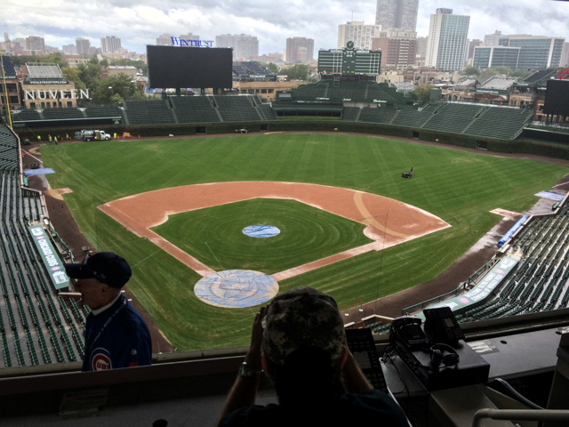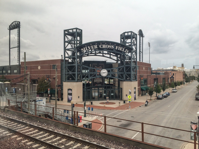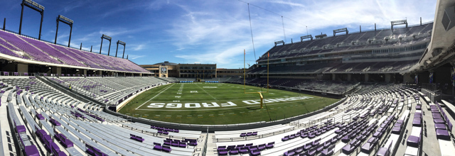 The Fort Worth skyline is visible from the home side of Farrington Field