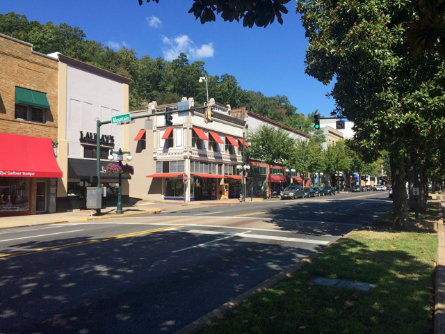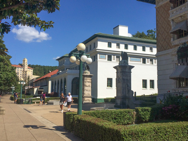 A variety of attractive shops line the main street of Hot Springs opposite the bath houses