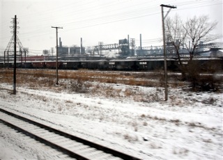 Making my way back to the roomette, I listened to a CD of Celtic Woman then headed to the sightseer lounge car.  Within the hour we were drawing close to Whiting, IN where a few industry photos were possible along Lake Michigan.